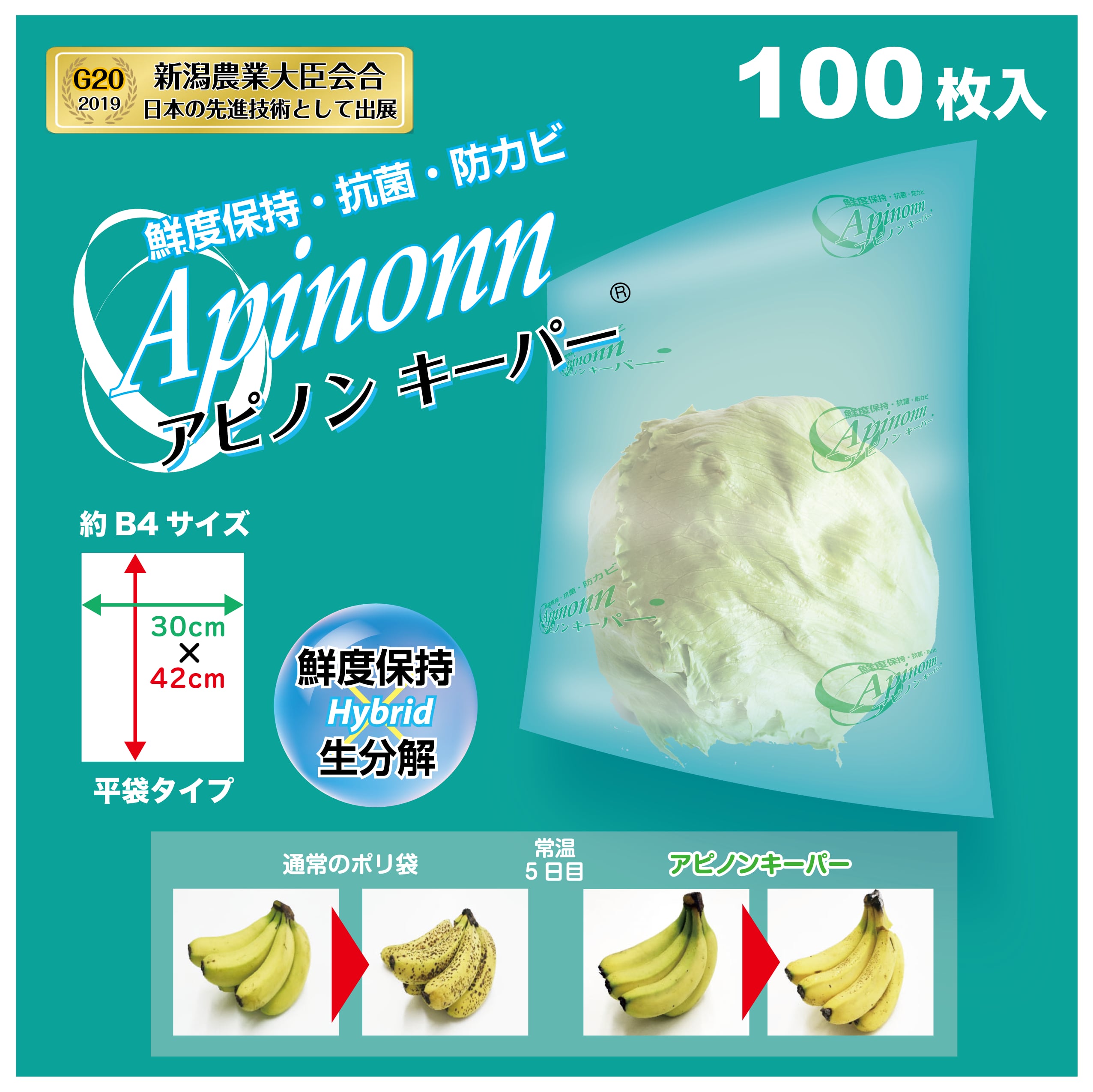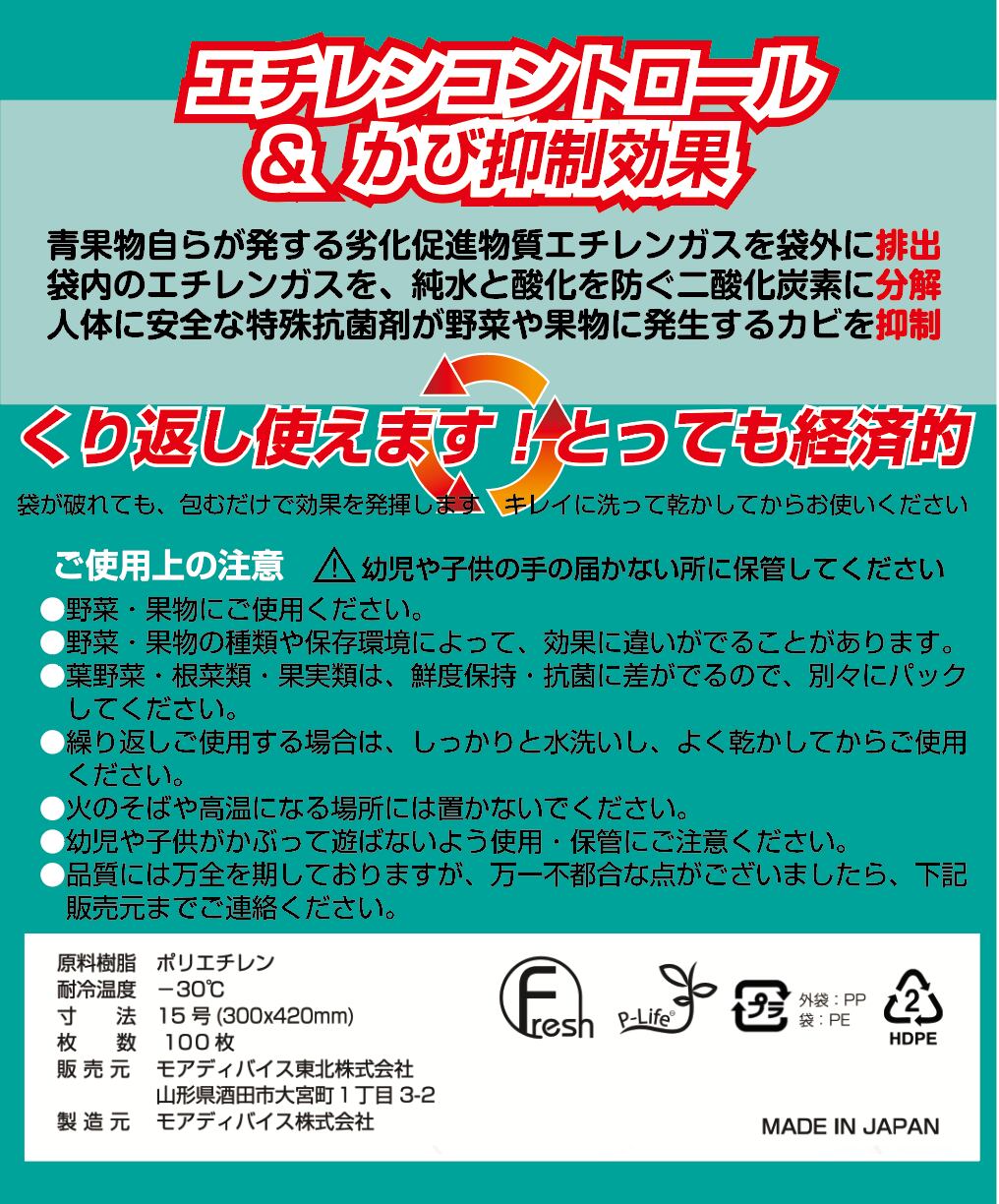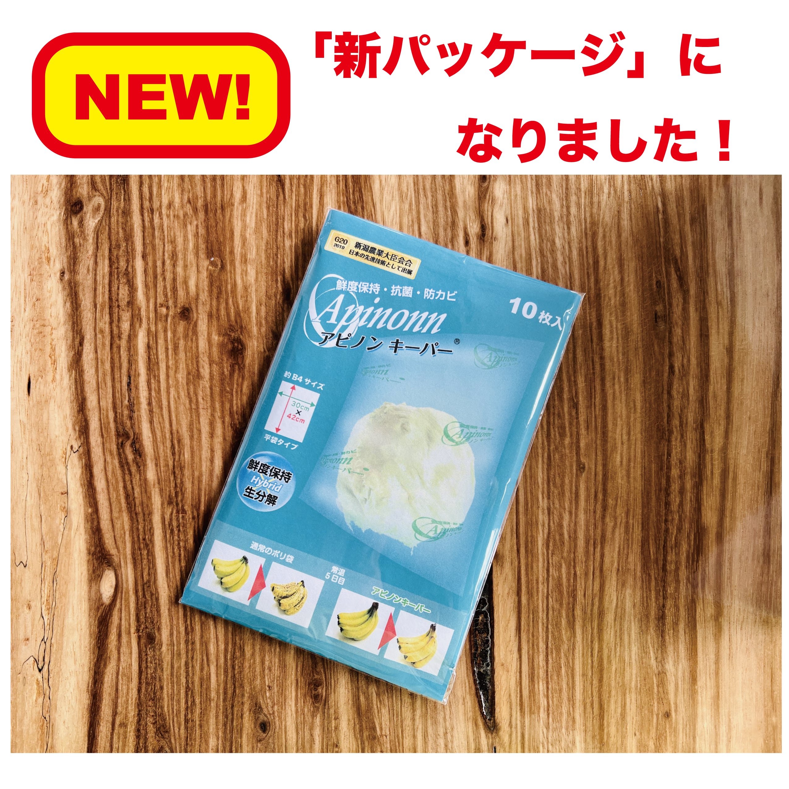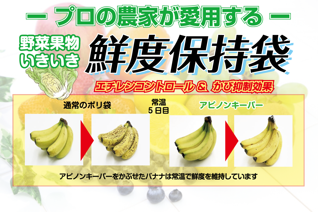 エチレンガスコントロールと優れた抗菌性によって野菜や果物の鮮度を保ち、腐敗や傷みによって食べられずに捨てられるフードロスを削減する「アピノンキーパー」包装シリーズ。繰り返し使えるので経済的です。